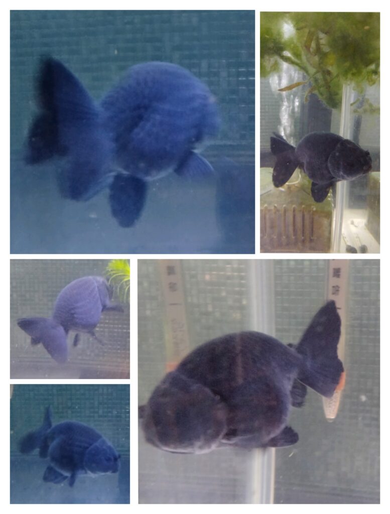薩摩産の黒らんちゅうは黒出目金と同様,普通鱗の輝きが出ないマットな黒の体色を持ち,他品種と違って鱗のツヤや透き通った肉瘤というよりむしろ,光に照らされて浮かび上がる陰影や,それによって強調されるらんちゅう体型の妙を楽しむことに特化しています.