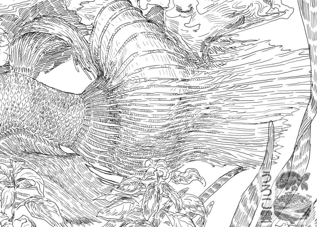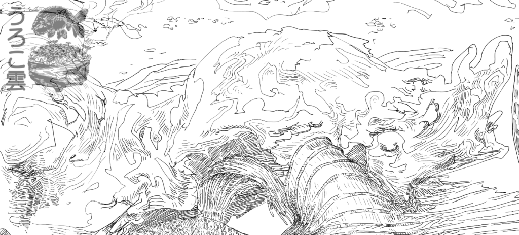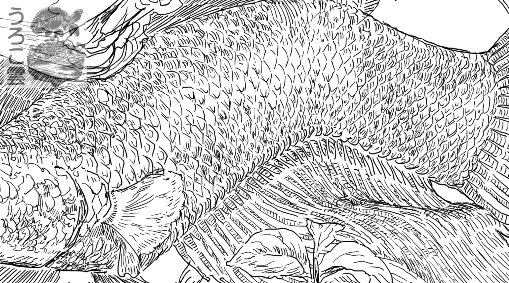 体のうねりに合わせて鱗のパターンを描くのは本当に難しいです.