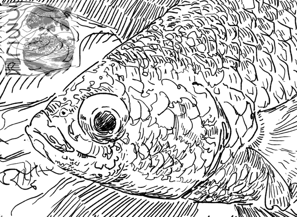 不透明な鱗に覆われているため,魚特有の複雑な口の構造をあまり描きこみすぎないようにします.