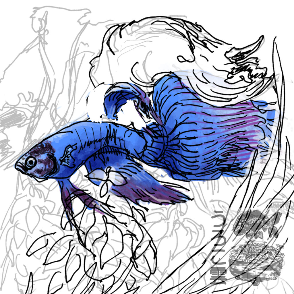 ベタ(ベールテール)のイラスト作品「近影」のメイキングを作者より解説