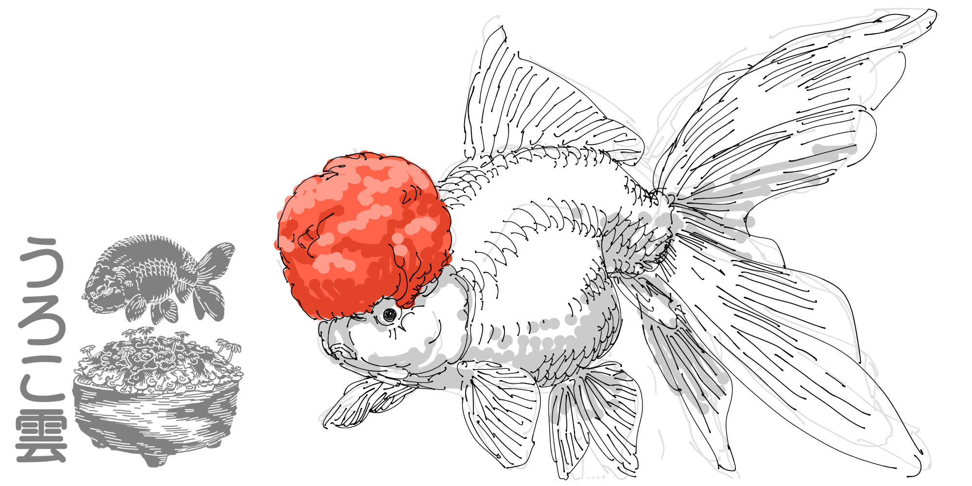 頭頂部のみ赤,その他が白の体色を持つオランダ獅子頭型の品種で,特徴的な色柄でも根強い人気から金魚売り場とあればどこでも見られる品種です.この特徴的な柄はらんちゅうなど他品種でも見られ,「丹頂柄」と呼ばれますが,こうした品種は一気に発見率が下がります.
