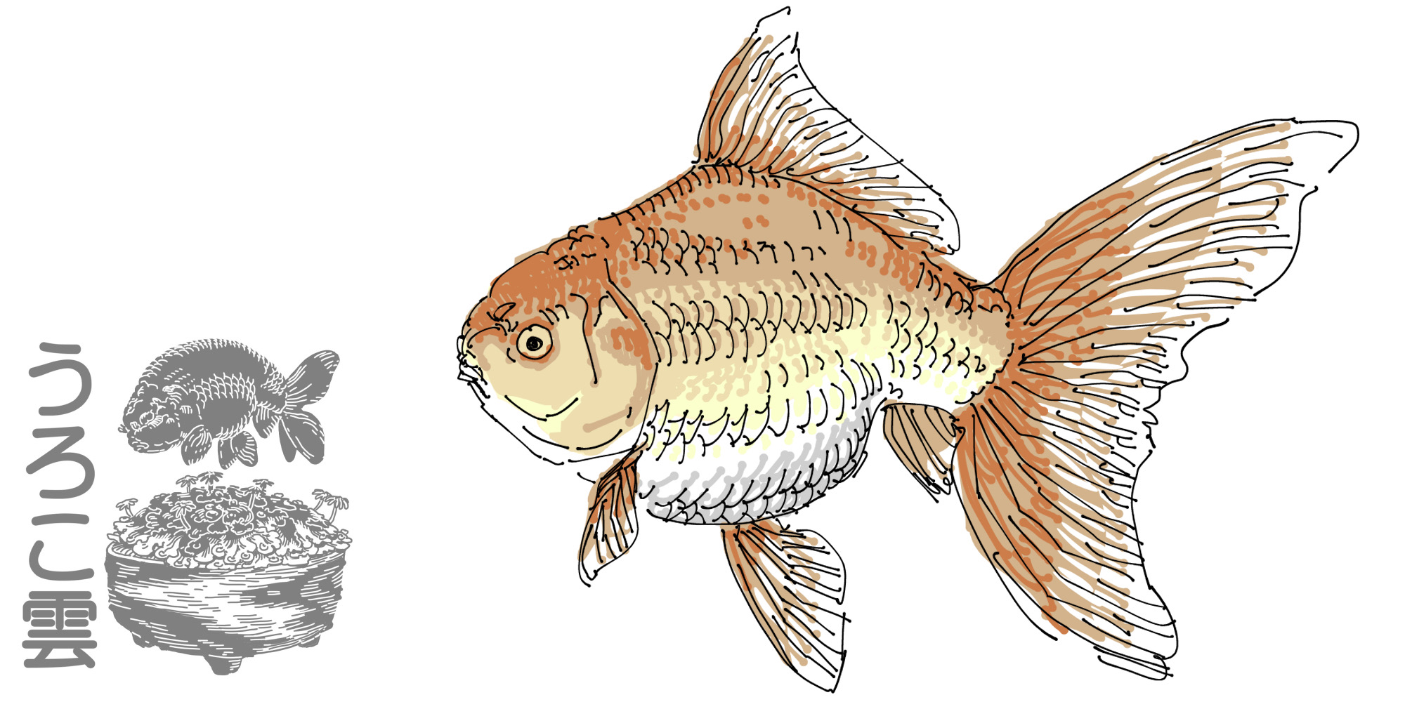 青文色の金魚は白に褪色することがありますが,途中まで褪色が進んだものを「羽衣(はごろも)」,完全に白くなったものを「白鳳(パイフォン)」と呼びます.
