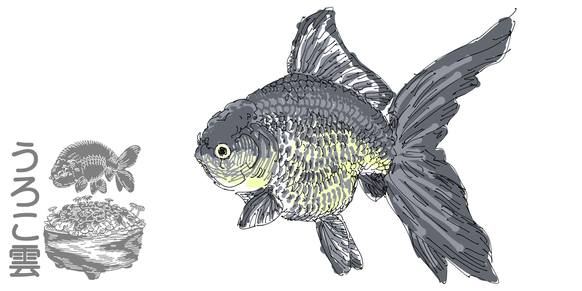 青文色の体色を持つオランダ獅子頭型の品種で,中国宮廷金魚の一種とされています.開き尾の金魚は上見すると「文」の字に見えることから「文魚」と呼ばれ,青い文魚ということで青文魚の名づけとなります.