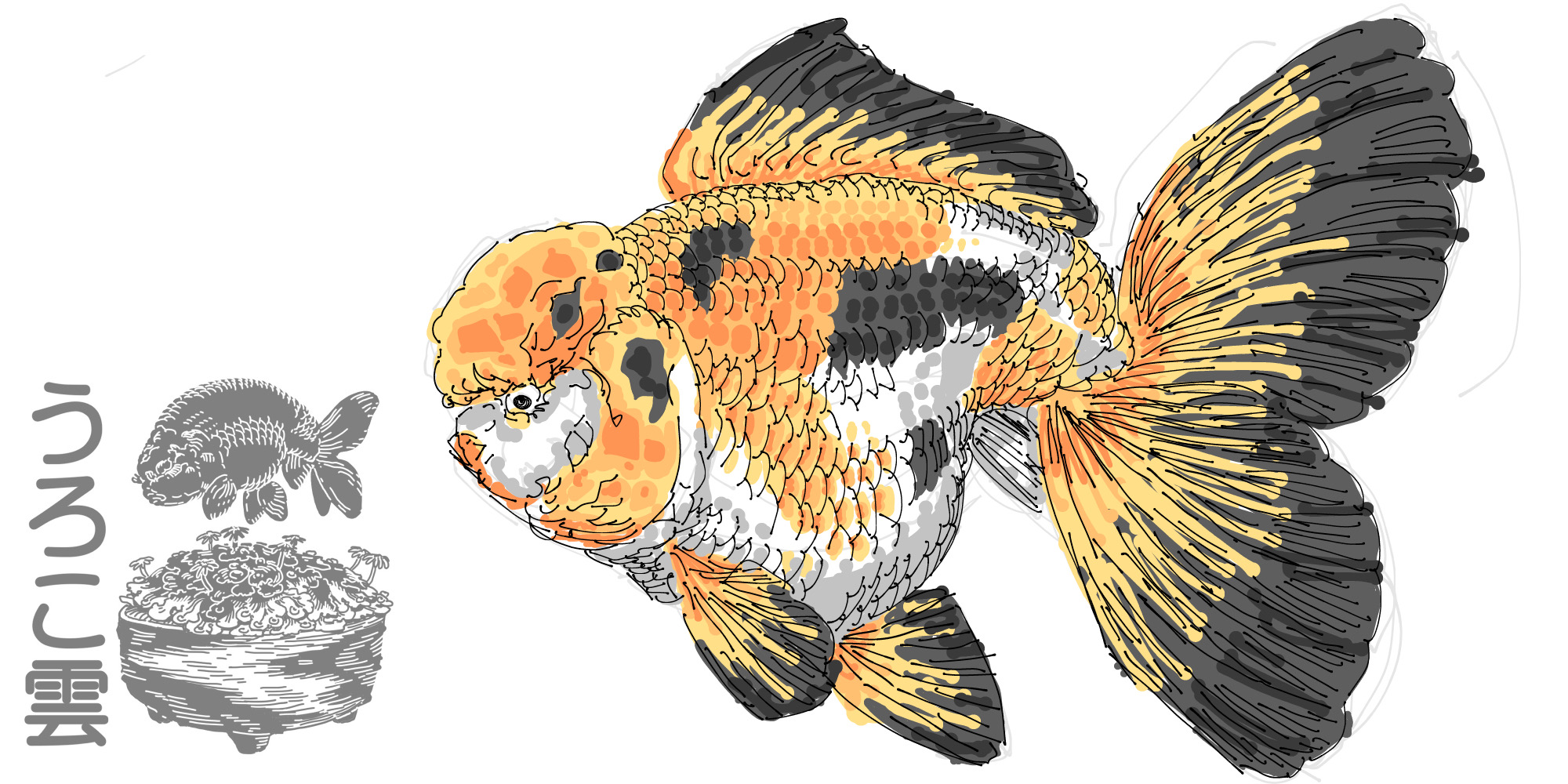 タイで作出された品種で,肉瘤のほか特別な丸みを帯びた優雅な尾びれが特徴です.体型のメリハリもしっかりしている場合が多く,普通鱗透明鱗問わず圧倒的な存在感があります.